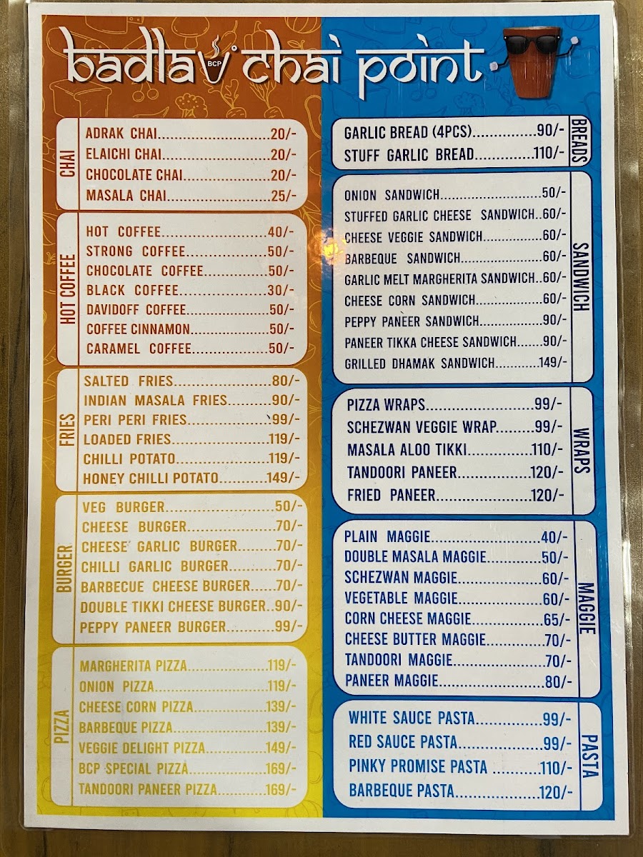 Welcome to Badlav Chai Point, a delightful cafe nestled in the heart of Agra. Located at Shop no. -2 block, 25, Mahatma Gandhi Rd, this charming spot is dedicated to the love of chai and offers a delightful array of food options that cater to all tastes.